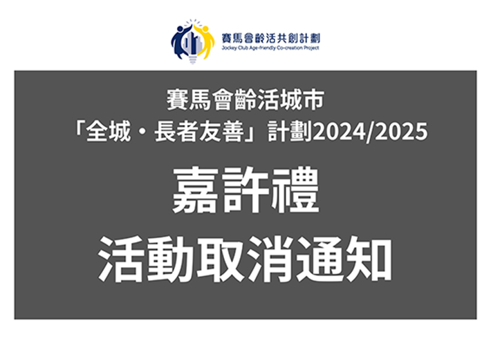 經慎重考慮,我們決定取消原定於明日(2025 年 11 月 28 日)舉行的「賽馬會齡活城市『全城・長者友善』計劃2024/2025 嘉許禮」。